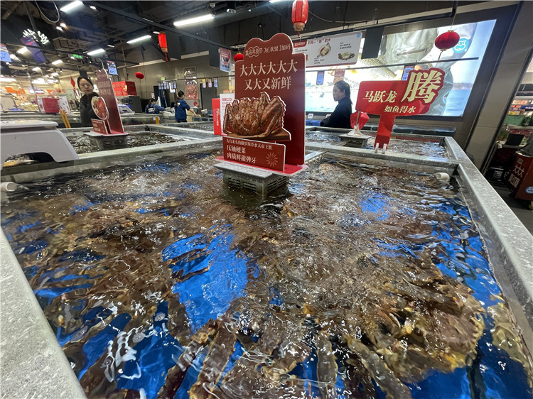 为保障过年期间大海鲜的供应,盒马提前在备货及运输上做好保障。2月以来,帝王蟹备货量超300吨,是平日的十倍。除夕当天,盒马海鲜品类单日销量增长超50%,其中帝王蟹、三文鱼、波士顿龙虾销量最高。帝王蟹仍是消费者年夜饭大海鲜的首选,除夕当日销量较去年除夕峰值规模增长60%,苏州盛泽店单日卖出超过600只,苏州也成为全国帝王蟹销量最高的城市。