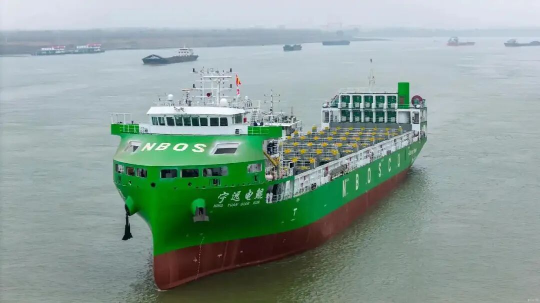 ▲江西江新造船有限公司制造的“宁远电鲲”号海船,是全球最大、国内首制万吨级纯电动智能海船。(图源:江西日报)