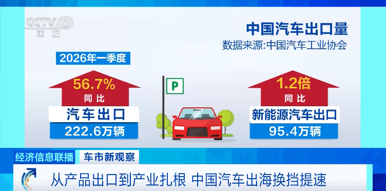 这份来自海外的好评,也在持续走高的出口数据中得到印证。自2023年起,中国汽车出口量已连续三年稳居世界第一,今年一季度汽车出口222.6万辆,同比增长56.7%。其中,新能源汽车出口95.4万辆,同比增长1.2倍。
