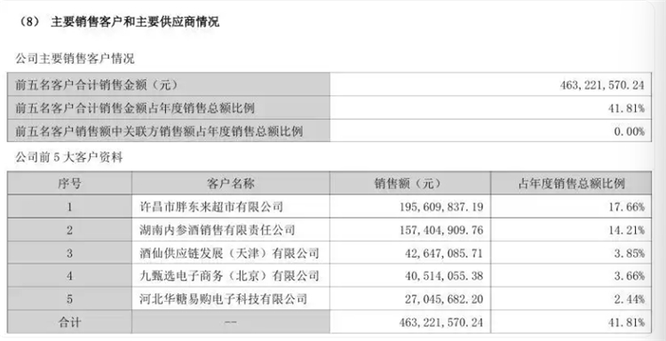 酒鬼酒在2025年年度报告中披露前五大客户资料