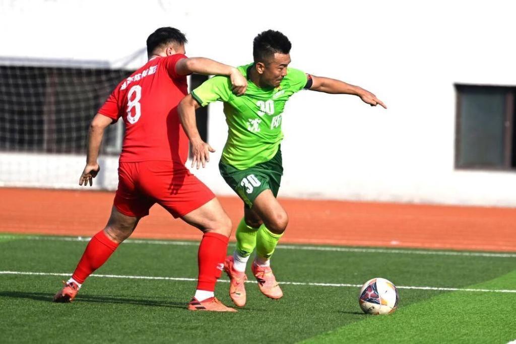 陈星(右)在一场“辽超”比赛中带球(受访者供图)