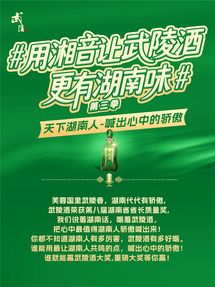 乡音绕梁,酒香满怀!备受湖南白酒爱好者瞩目的“用湘音让武陵酒更有湖南味”第三季活动已进入收官倒计时。恰逢武陵酒荣膺第八届湖南省省长质量奖,这一全省质量领域的最高荣誉,是对武陵酒匠心酿造与卓越品质的权威认可。