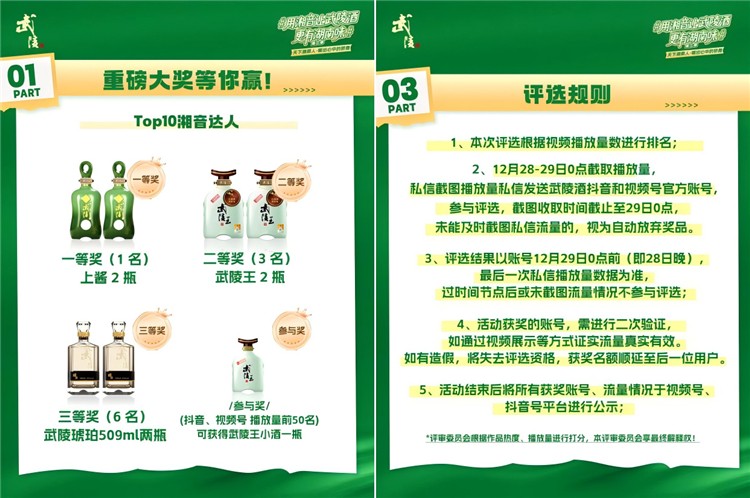 本次活动自11月底启幕,邀请万千乡友用熟悉的乡音,共话武陵酒的品质故事。活动还得到了常德、岳阳、长沙自媒体协会的鼎力支持,同时积极联动湘超大湾区活动,携手打造了多个热点视频,全方位扩大了活动影响力。这场融合湘音与荣光的盛会,即将于12月底圆满落幕。