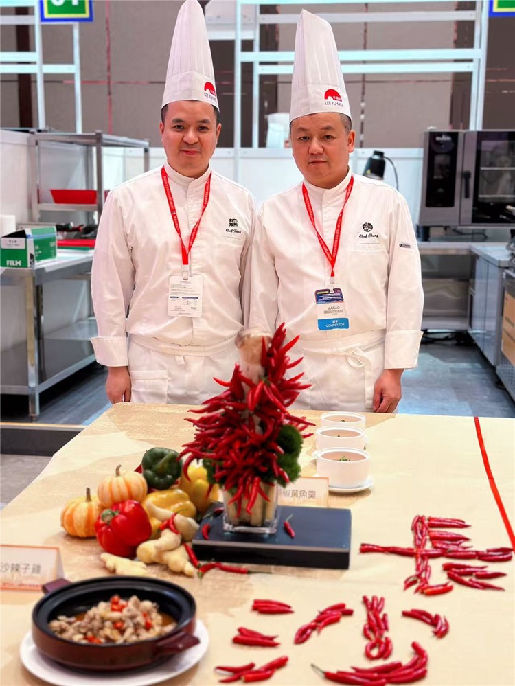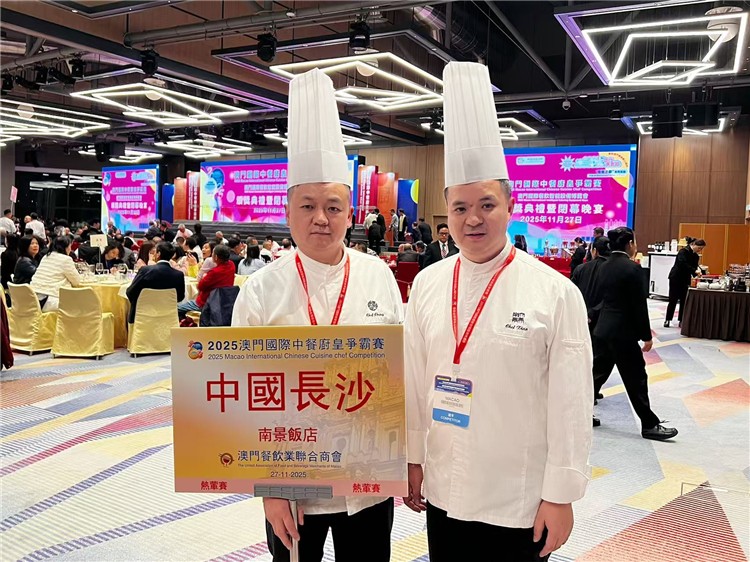 红网时刻新闻12月1日讯(记者 邓晓娟)近日,2025澳门国际中餐厨皇争霸赛落下帷幕,活动汇聚来自40多个国家及地区的200多名厨界精英。长沙南景饭店肖昌林、程喜海两位师傅携“鲊辣椒黄鱼羹”和“老长沙辣子鸡”两道湖湘佳肴精彩亮相,以精湛的技艺和融合的创意向世界展示了湘菜“一菜一格”的独特魅力,成为赛事中一道备受瞩目的风景。